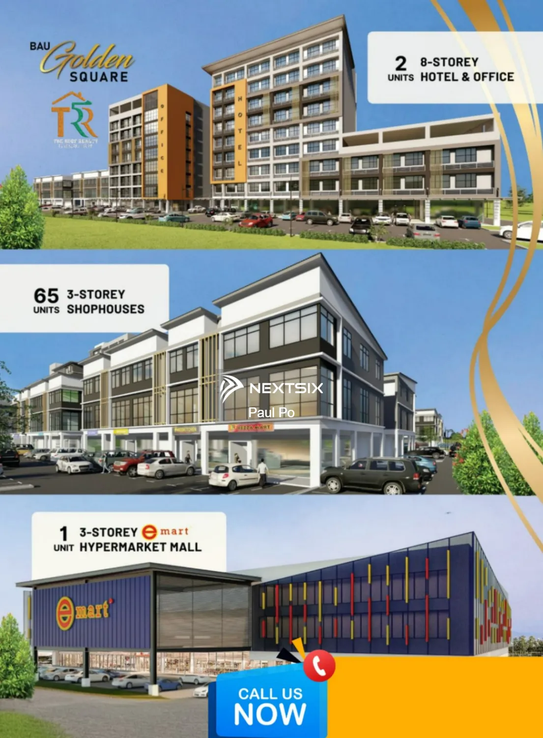 🏢 BAU GOLDEN SQUARE — The Biggest Ever Commercial Development in Bau! 🚀 📍Location Direct access to Bau–Kuching & Bau–Lundu trunk roads Only 600m from the famous Tasik Biru tourist hotspot 🌊 ✨ Project Highlights: 65 units of 3-storey shophouses 🏬 2 blocks of 8-storey Hotel & Office Towers 🏨🏢 1 block of 3-storey Hypermarket Mall 🛒 — featuring EMART Hypermarket! 🎉 𝗙𝗼𝗿 𝗠𝗼𝗿𝗲 𝗜𝗻𝗳𝗼𝗿𝗺𝗮𝘁𝗶𝗼𝗻 𝗣𝗹𝗲𝗮𝘀𝗲 𝗖𝗮𝗹𝗹 𝗢𝗿 𝗪𝗵𝗮𝘁𝘀𝗮𝗽𝗽 : 𝗣𝗮𝘂𝗹 𝗣𝗼 (𝗥𝗘𝗡𝟯𝟭𝟲𝟬𝟴) 📱📱📱0162381221